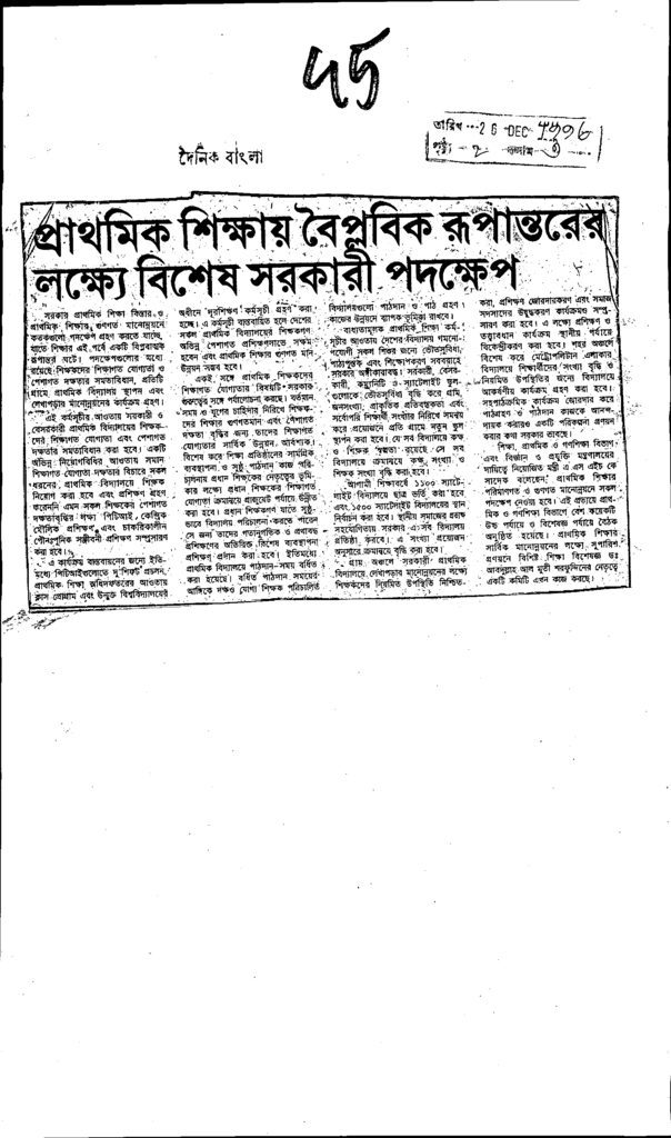 প্রাথমিক শিক্ষায় বৈপ্লবিক রূপান্তরের লক্ষো বিশেষ সরকারী পদক্ষেপ Published on Newspaper দৈনিক বাংলা Category General Education General Education Download