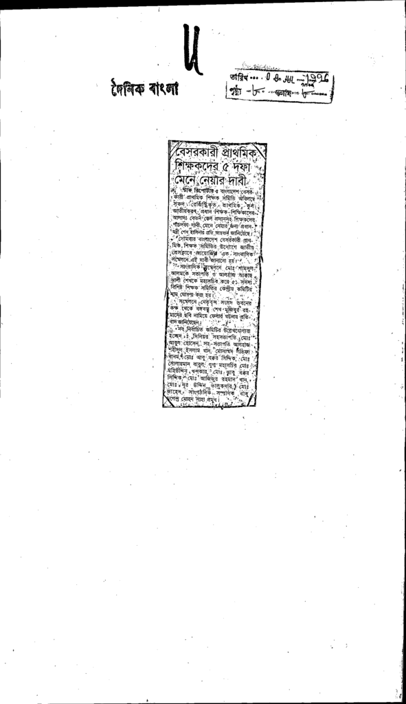 বেসরকারী প্রাথমিক শিক্ষকদের ৫টি দফা মেনে নেয়ার দাবী Published on Newspaper দৈনিক বাংলা Category General Education General Education Download