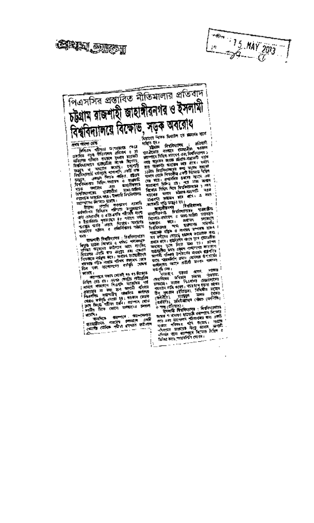 পিএসসির প্রস্তাবিত নীতিমালার প্রতিবাদ