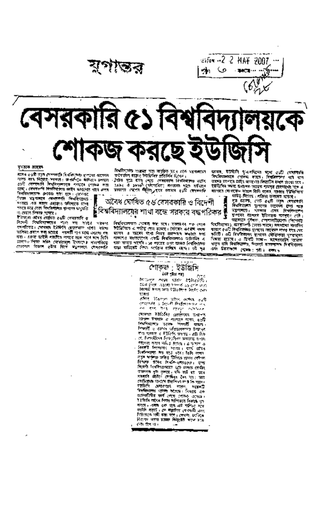 বেসরকারি ৫১ বিশ্ববিদ্যালয়কে শোকজ করছে ইউজিসি Published on Newspaper দৈনিক যুগান্তর Category General Education General Education Higher Education Private Download