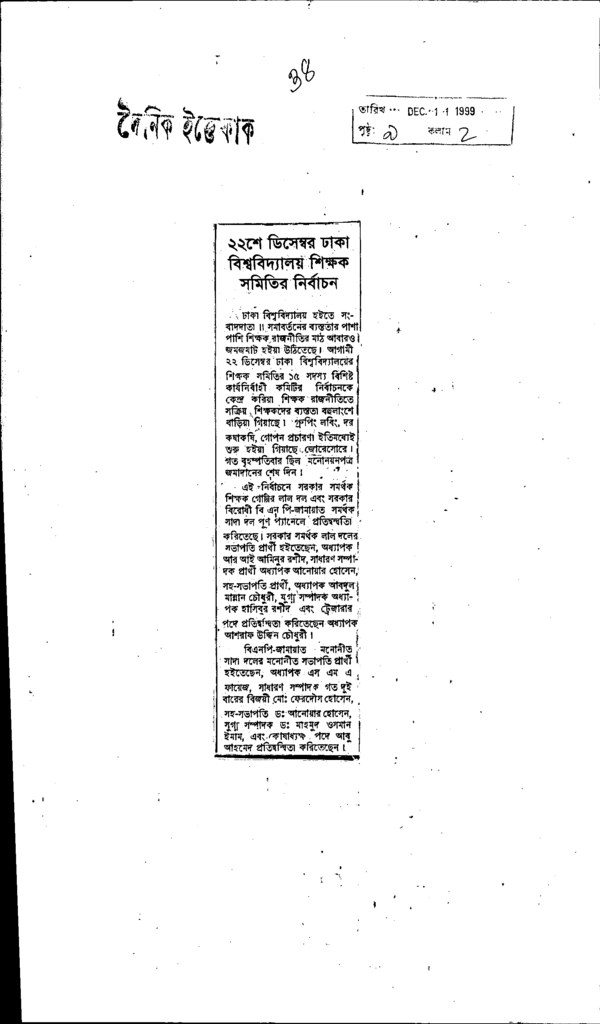 22শে ডিসেম্বর ঢাকা বিশ্ববিদ্যালয় শিক্ষক সমিতির নির্বাচন Published on Newspaper দৈনিক ইত্তেফাক Category Personal Opinion / Discussion / Commentary Personal Speech / Discussion / Comentary Secondary and Higher Secondary Education Download
