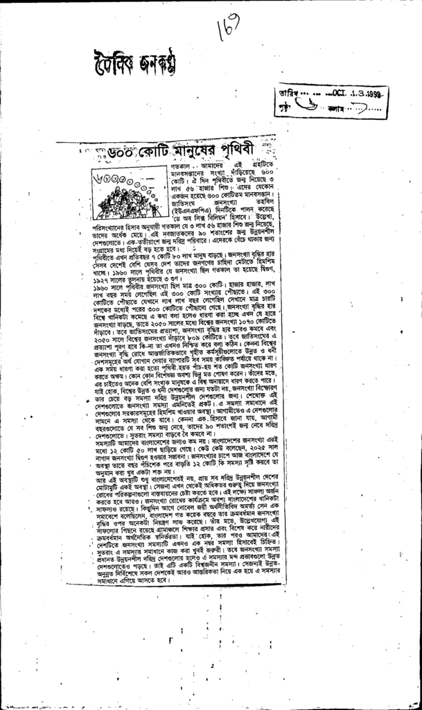600 কোটি মানুষের পৃথিবী Published on Newspaper দৈনিক জনকণ্ঠ Category Personal Opinion / Discussion / Commentary Personal Speech / Discussion / Comentary Secondary and Higher Secondary Education Download