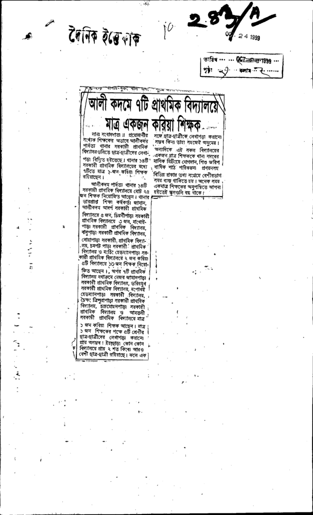 আলী কদমে 7টি প্রাথমিক বিদ্যালয়ে মাত্র একজন কারিয়া শিক্ষক Published on Newspaper দৈনিক ইত্তেফাক Category Personal Opinion / Discussion / Commentary Personal Speech / Discussion / Comentary Secondary and Higher Secondary Education Download