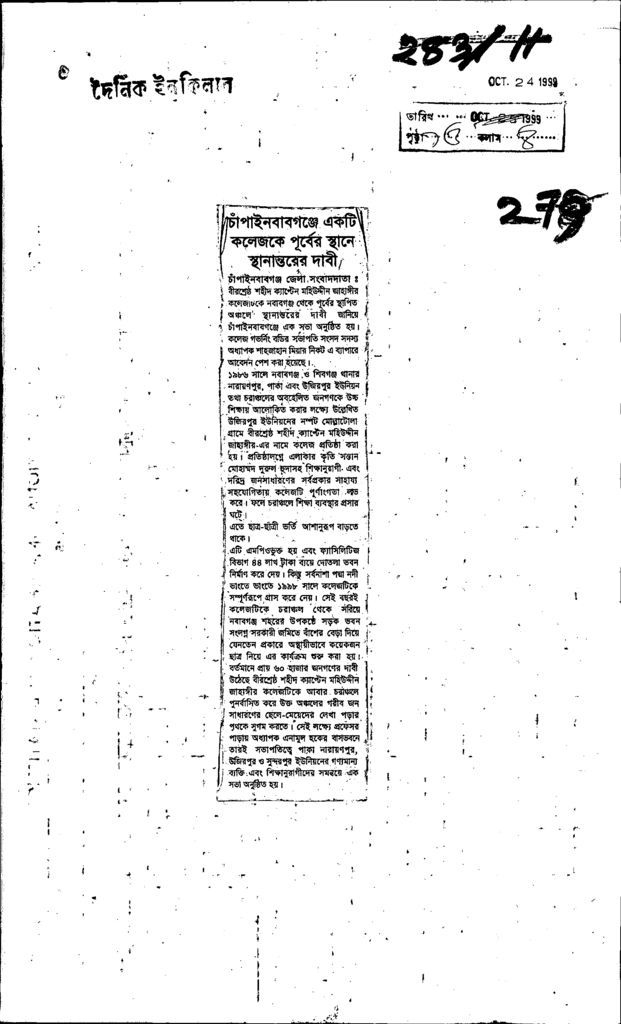 চাঁপাইনবাবগঞ্জে একটি কলেজকে পূর্বের স্থানে স্থানান্তরের দাবী