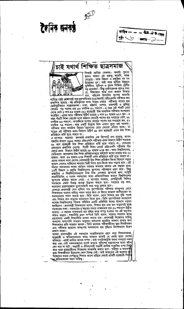 চাই যথার্থ শিক্ষিত ছাত্রসমাজ Published on Newspaper দৈনিক জনকণ্ঠ Category Personal Opinion / Discussion / Commentary Personal Speech / Discussion / Comentary Secondary and Higher Secondary Education Download