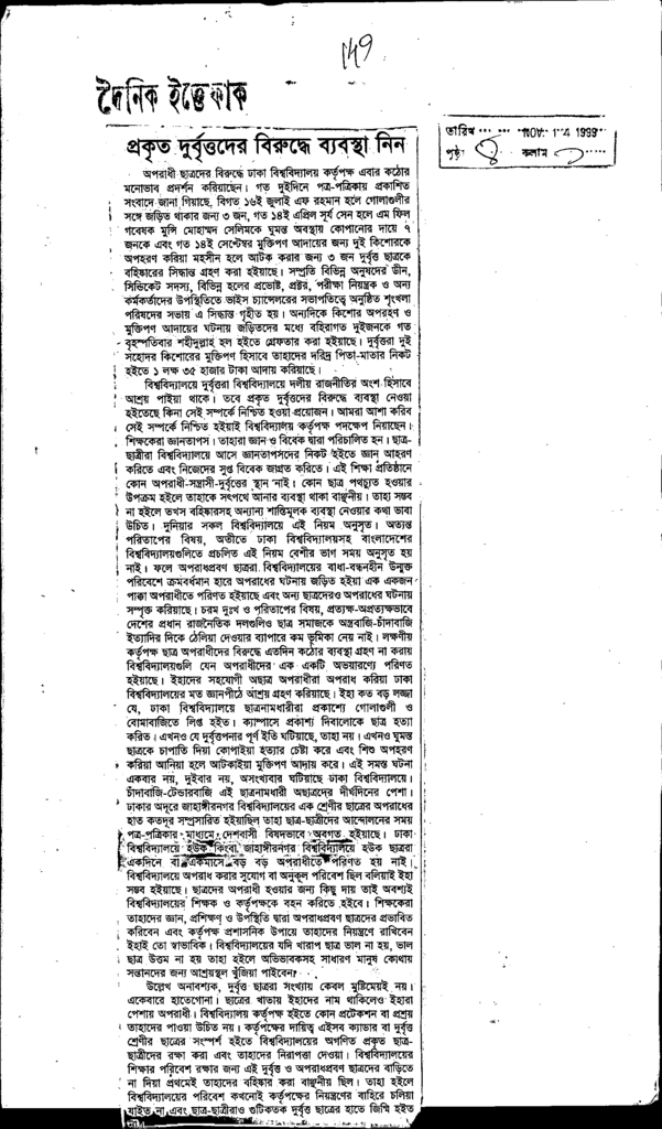 প্রকৃত দুর্বৃত্তদের বিরুদ্ধে ব্যবস্থা নিন Published on Newspaper দৈনিক ইত্তেফাক Category Personal Opinion / Discussion / Commentary Personal Speech / Discussion / Comentary Secondary and Higher Secondary Education Download
