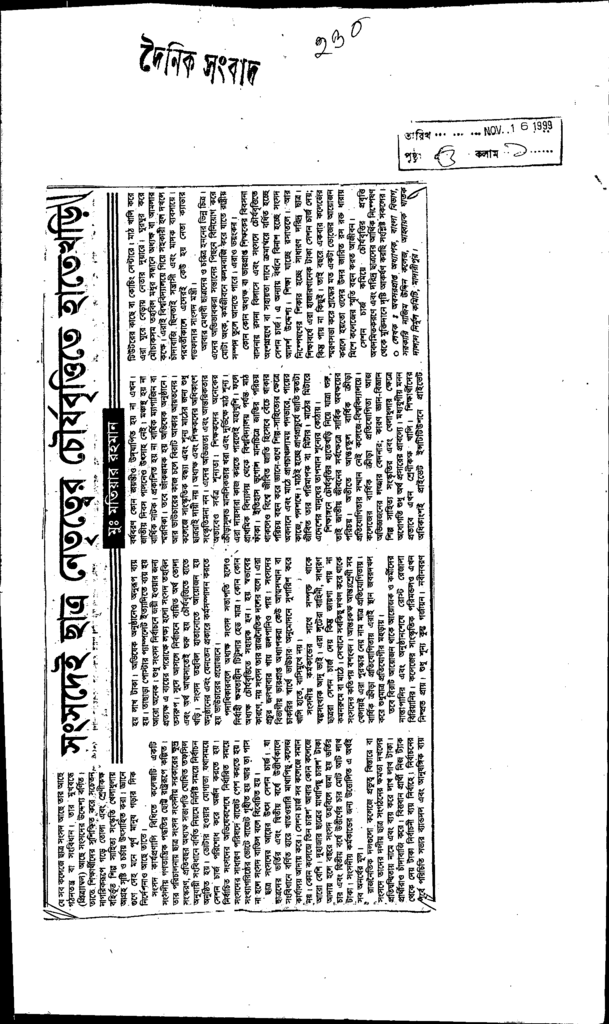 সংসদেই ছাত্র নেতৃত্বের চৌর্যবৃত্তিতে হাতেখড়ি Published on Newspaper দৈনিক সংবাদ Category Personal Opinion / Discussion / Commentary Personal Speech / Discussion / Comentary Secondary and Higher Secondary Education Download