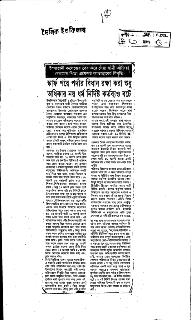 স্কার্ফ পরে পর্দার বিধান রক্ষা করা শুধু অধিকার নয় ধর্ম নির্দিষ্ট কর্তব্যও বটে Published on Newspaper দৈনিক ইনকিলাব Category Personal Opinion / Discussion / Commentary Personal Speech / Discussion / Comentary Secondary and Higher Secondary Education Download