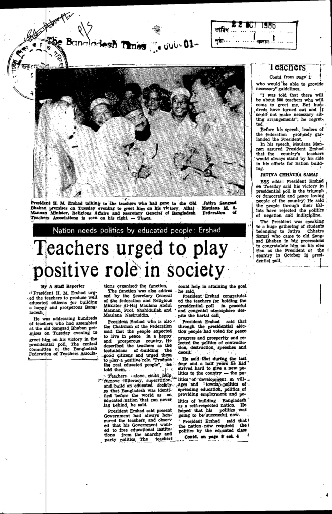 Teachers urged to play positive role in society Published on Newspaper The Bangladesh Observer Category Personal Opinion / Discussion / Commentary Personal Speech / Discussion / Comentary Secondary and Higher Secondary Education Download