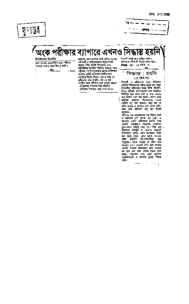 অংক পরীক্ষার ব্যাপারে এখনও সিদ্ধান্ত হয়নি Published on Newspaper দৈনিক যুগান্তর Category Public Examination Download