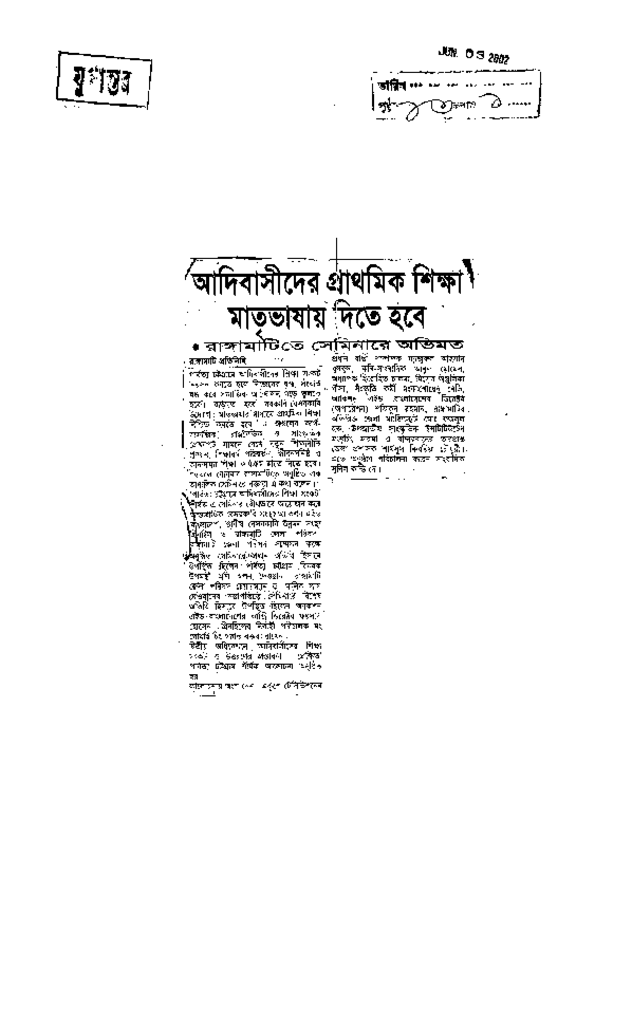 আদিবাসীদের প্রাথমিক শিক্ষা মাতৃভাষায় দিতে হবে Published on Newspaper দৈনিক যুগান্তর Category General Education General Education Download