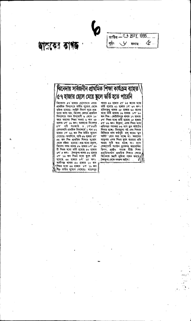ঝিনেদায় সার্বজনীন প্রাথমিক শিক্ষা কার্যক্রম ব্যাহত ৫৭ হাজার ছেলে মেয়ে স্কুলে ভর্তি হতে পারেনি Published on Newspaper দৈনিক আজকের কাগজ Category General Education General Education Download