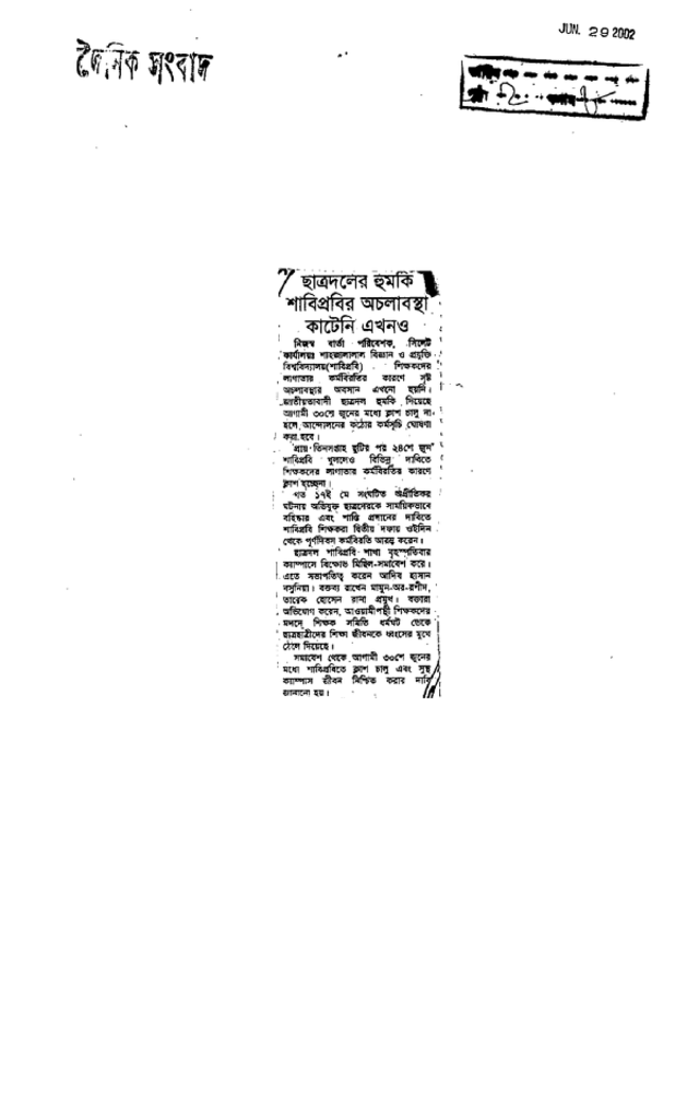 ছাত্রদলের হুমকি শাবিপ্রবির অচলাবস্থা কাটেনি এখনও Published on Newspaper দৈনিক সংবাদ Category Campus Terrorism Download