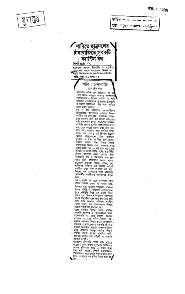 শাবিতে ছাত্রদলের চাাদাবাজিতে সবকটি ক্যান্টিন বন্ধ