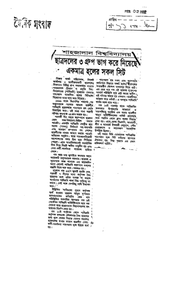 ছাত্রদলের ৩ গ্রুপ ভাগ করে নিয়েছে একমাত্র হলের সকল সিট Published on Newspaper দৈনিক সংবাদ Category Student Politics Download