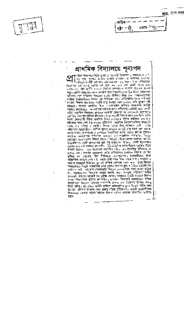 প্রাথমিক বিদ্যালয়ে শূন্যপদ