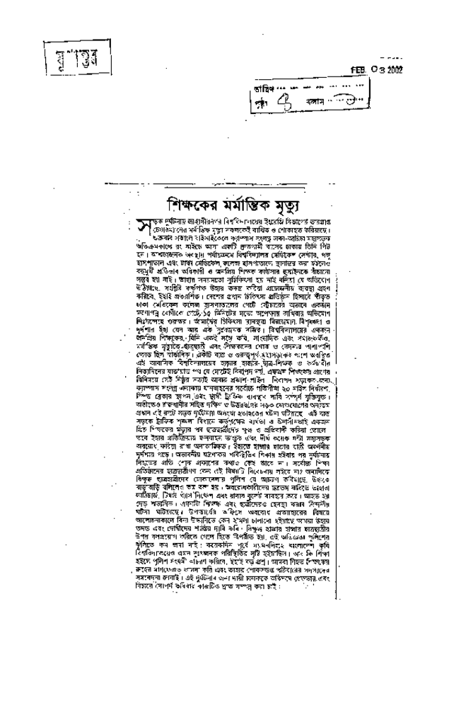 শিক্ষকদের মর্মান্তিক মৃত্যু Published on Newspaper দৈনিক যুগান্তর Category Personal Opinion / Discussion / Commentary Download