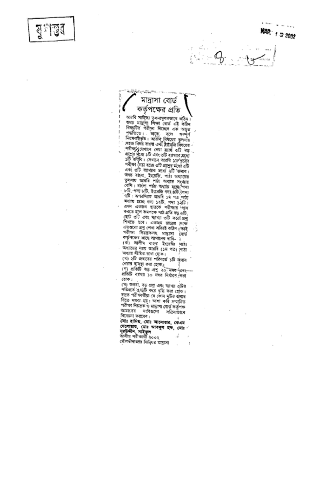 মাদ্রাসা বোর্ড কর্তৃপক্ষের প্রতি Published on Newspaper দৈনিক যুগান্তর Category Personal Opinion / Discussion / Commentary Download