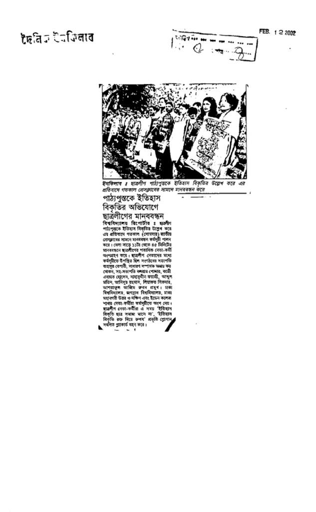 পাঠ্যপুস্তকে ইতিহাস বিকৃতির অভিযোগে ছা্ত্রলীগের মানববন্ধন Published on Newspaper দৈনিক ইনকিলাব Category Student Politics Download