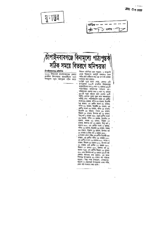 চাপাইনবাবগঞ্জে বিনামূল্যে পাঠ্যপুস্তক সঠিক সময়ে বিতরণে অনিশ্চয়তা Published on Newspaper দৈনিক যুগান্তর Category Personal Opinion / Discussion / Commentary Download