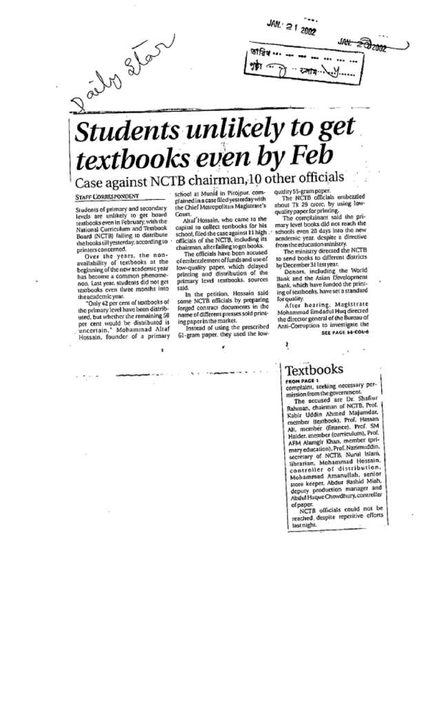 Students unlikely to get textbooks even by Feb Published on Newspaper The Daily Star Category Student Politics Download