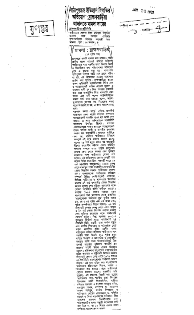 পাঠ্যপুস্তক ইতিহাস বিকৃতির অভিযোগ : ব্রাক্ষ্মণবাড়িয়া আদালতে মামলা দায়ের Published on Newspaper দৈনিক যুগান্তর Category Educational Ministry / Departments Download