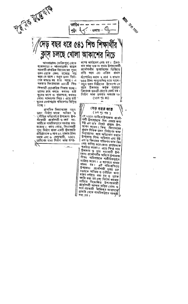 দেড় বছর ধরে ৫৪১ শিশু শিক্ষার্থীর ক্লাস চলছে খোলা আকাশের নিচে Published on Newspaper দৈনিক ইত্তেফাক Category Child Education Download