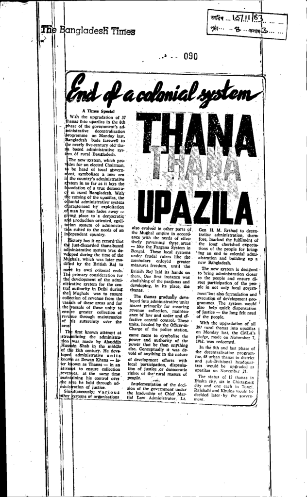 End of acdonial system THANA Published on Newspaper The Bangladesh Times Category Admission / Seat Problem Download