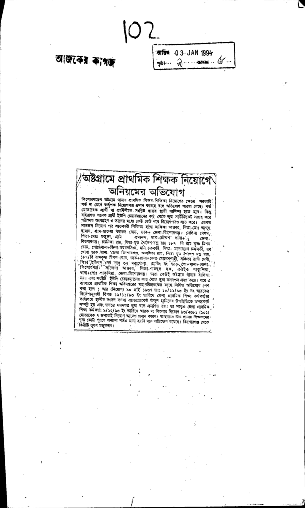 অষ্টগ্রামে প্রাথমিক শিক্ষকক নিয়োগ অনিয়মের অভিযোগ Published on Newspaper দৈনিক আজকের কাগজ Category General Education General Education Download