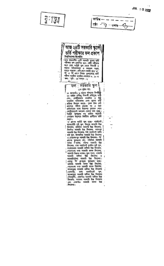 আজ ২৪টি সরকারী স্কুলে ভর্তি পরীক্ষার ফল প্রকাশ Published on Newspaper দৈনিক যুগান্তর Category Admission / Seat Problem Download