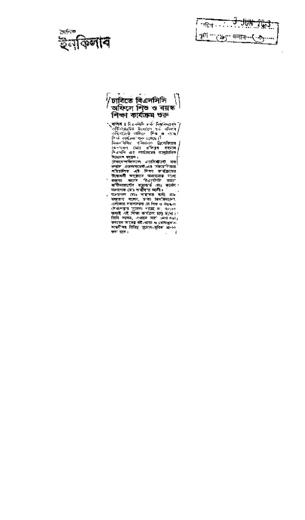 ঢাবিতে বিএনসিসি অফিসে শিশু ও বয়স্ক শিক্ষা কার্যক্রম শুরু Published on Newspaper দৈনিক ইনকিলাব Category Child Education Download