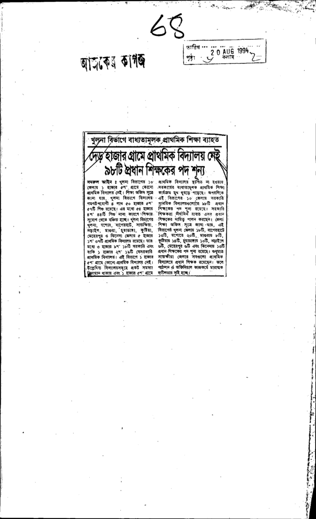 দেড় হাজার গ্রামে প্রাথমিক বিদ্যালয নেই ৯৮ টি প্রধান শিক্ষকের পদ শূন্য Published on Newspaper দৈনিক আজকের কাগজ Category General Education General Education Download