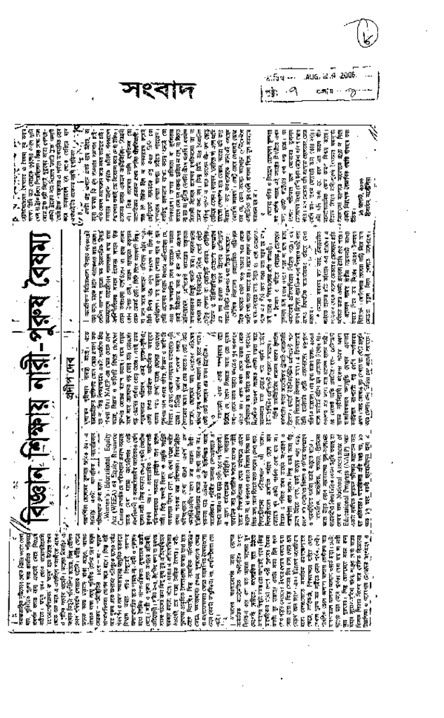 বিজ্ঞান শিক্ষায় নারী-পুরুষ বৈষম্য Published on Newspaper দৈনিক সংবাদ Category Science Education Download