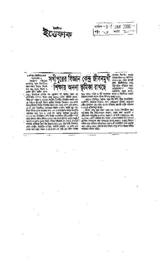 সখীপুরের বিজ্ঞান কেন্দ্র জীবনমুখী শিক্ষায় অনন্য ভূমিকা রাখছে Published on Newspaper দৈনিক ইত্তেফাক Category Science Education Download