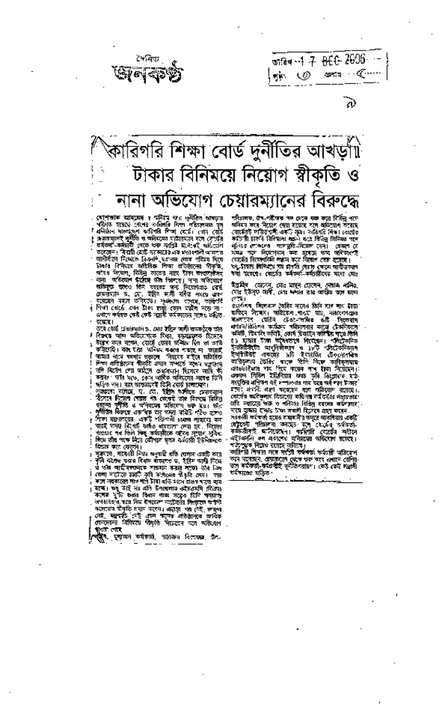 কারিগরি শিক্ষা বোর্ড দুর্নতিরি আখড়া // টাকার বিনিমিয়ে নিযোগ স্বীকৃতি ও নানা অভিযোগ চেয়ারম্যানের বিরুদ্ধে Published on Newspaper দৈনিক জনকণ্ঠ Category Technical and Vocational Education Education Ministry / Division / Directorate General Education Download