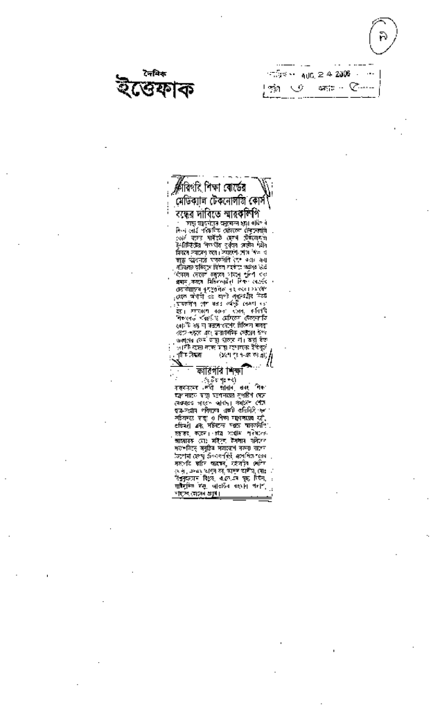 কারিগরি শিক্ষা বোর্ডের মেডক্যাল টেকনোলজি কোর্স বন্ধের দাবিতে স্মারকলিপি