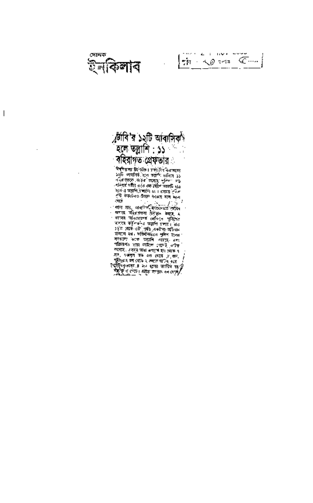 ঢাবি’র ১২টি আবাসিক হলে তল্লাশি : ১১ বহিরাগত গ্রেফতার Published on Newspaper দৈনিক ইনকিলাব Category Campus Terrorism Download