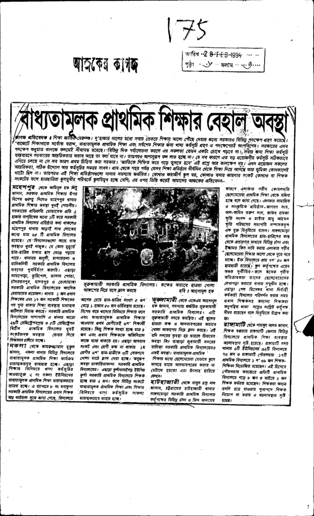 বাধ্যতামূলক প্রাথমিক শিক্ষার বেহালা অবস্থা Published on Newspaper দৈনিক আজকের কাগজ Category General Education General Education Download