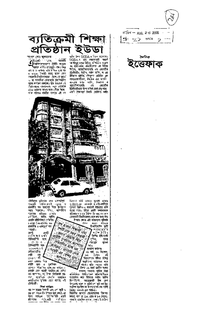ব্যতিক্রমী শিক্ষা প্রতিষ্ঠান ইউডা Published on Newspaper দৈনিক ইত্তেফাক Category General Education General Education Higher Education Private Download