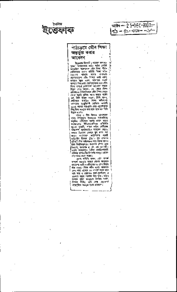 পাঠ্যক্রমে যৌন শিক্ষা অন্তর্ভূক্ত করার আবেদন