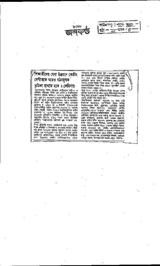 শিক্ষার্থীদের মেধা উন্নয়নে কোচিং সেন্টারকে আরও গঠনমূলক ভূমিকা রাখতে হবে // সেমিনার Published on Newspaper দৈনিক জনকণ্ঠ Category Personal Opinion / Discussion / Commentary Personal Speech / Discussion / Comentary Secondary and Higher Secondary Education Download