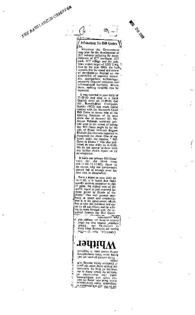 Invitatation To Bill GAtes Published on Newspaper The Bangladesh Observer Category ICT Education Download