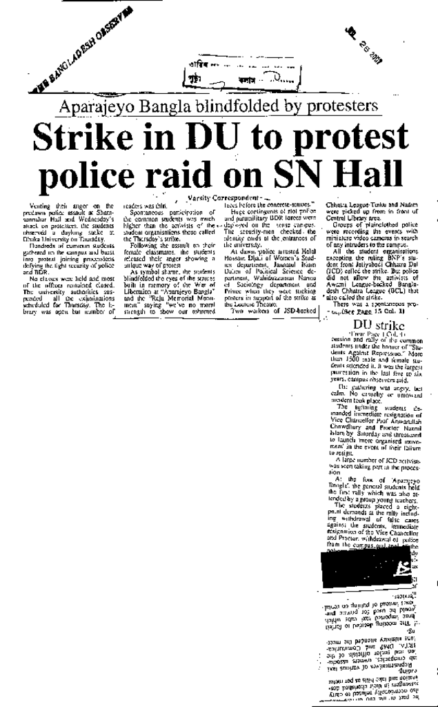 Strike in DU to protest police raid on SN Hall Published on Newspaper The Bangladesh Observer Category Campus Terrorism Download