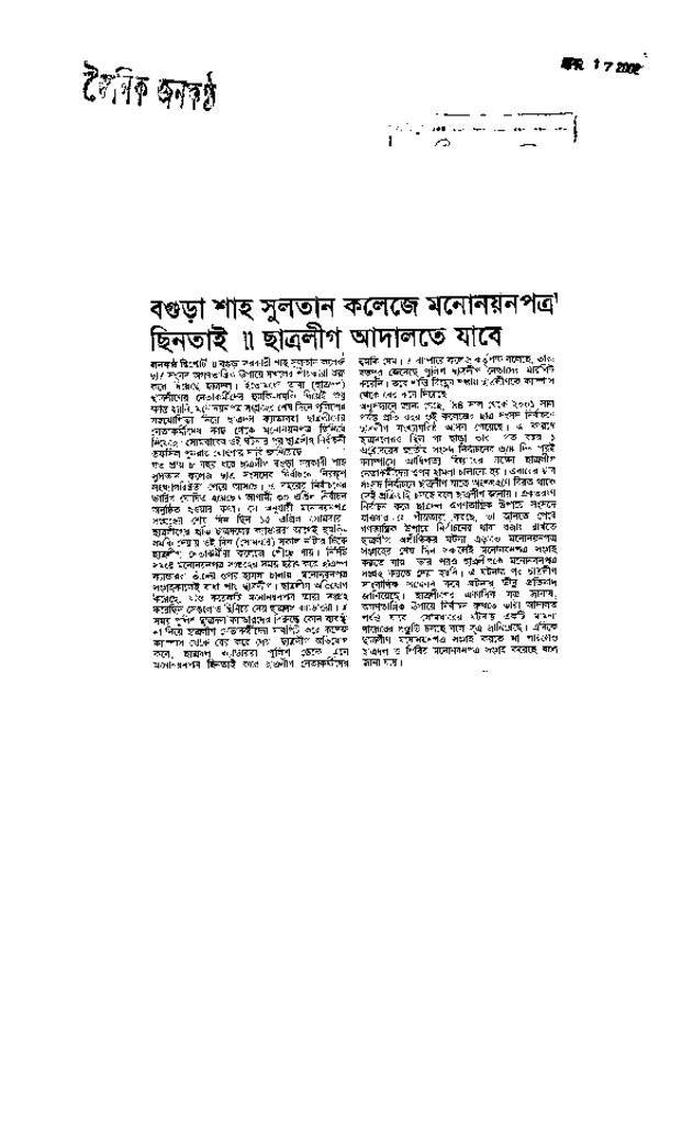 বগুড়া শাহ সুলতান কলেজে মনোনয়পত্র ছিনতাই // ছাত্রলীগ আদালতে যাবে Published on Newspaper দৈনিক জনকণ্ঠ Category Campus Terrorism Download