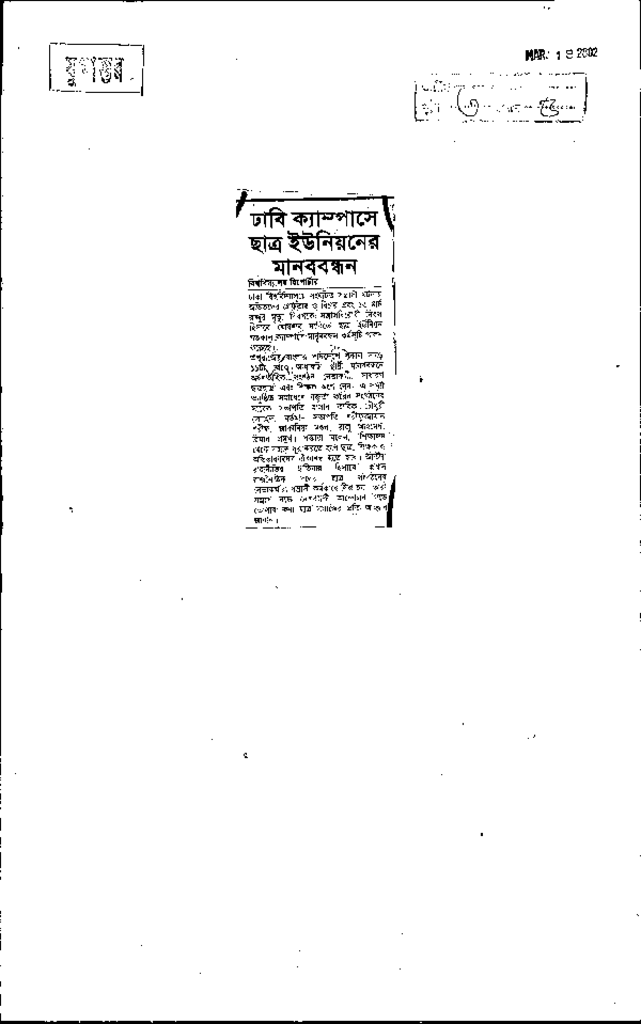 ঢাবি ক্যাম্পাস ছাত্র ইউনিয়নের মানববন্ধন