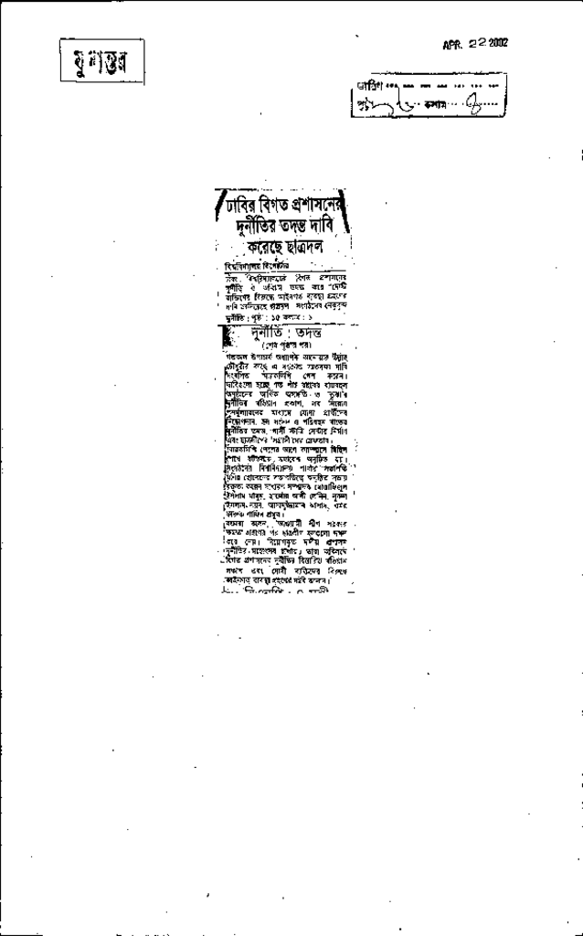 ঢাবির বিগত প্রশাসনের দুর্নীতির তদন্ত দাবি করেছে ছাত্রদল Published on Newspaper দৈনিক যুগান্তর Category General Education General Education Higher Education Public Download
