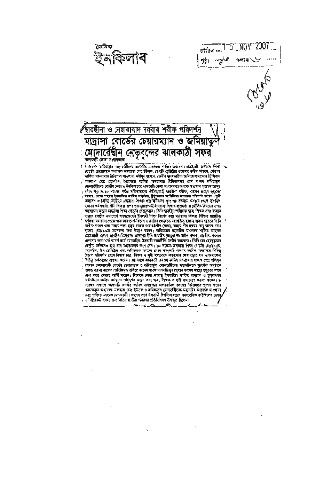 মাদ্রাসা বোর্ডের চেয়ারম্যান ও জামিয়াতুল মোদার্রেছীন নেতৃবৃন্দের ঝালকাঠী সফর