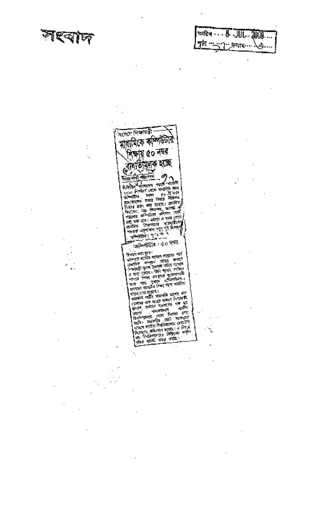 মাধ্যমিকে কম্পিউটার শিক্ষায় ৫০ নম্বর বাধ্যতুমলক হচ্ছে Published on Newspaper দৈনিক সংবাদ Category ICT Education Download