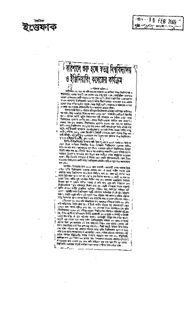 বরিশালে শুরূ হচ্ছে স্বতন্ত্র বিশ্ববিদ্যালয় ও ইঞ্জিনিয়ারিং কলেজের কার্যক্রম Published on Newspaper দৈনিক ইত্তেফাক Category Professional Education Professional Education Engineering Download