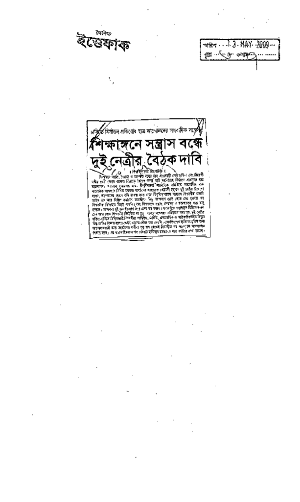 শিক্ষাঙ্গনে সন্ত্রাস বন্ধে দুই নেত্রীর বৈঠক দাবি Published on Newspaper দৈনিক ইত্তেফাক Category Campus Terrorism Download